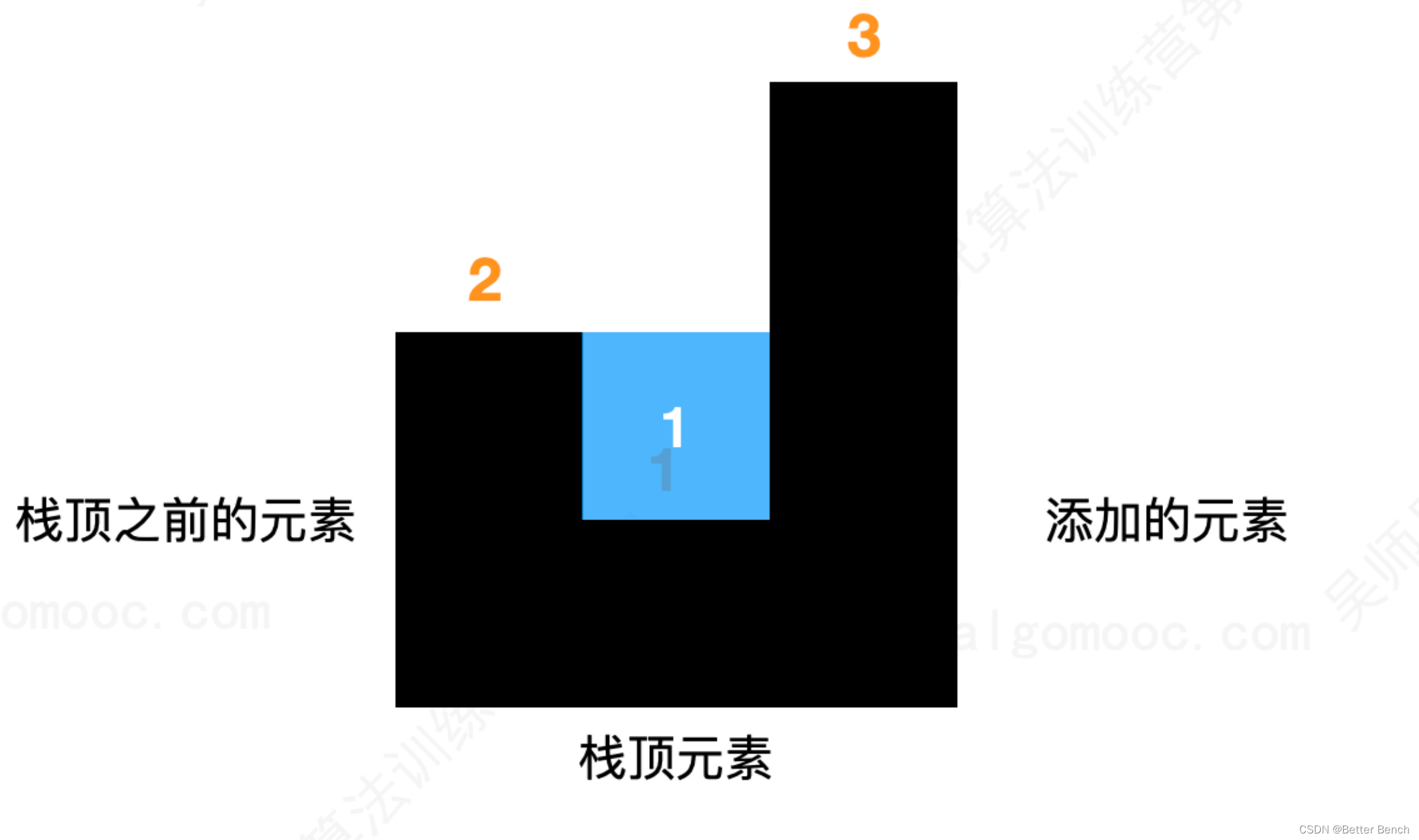 注意:凹槽的高度是由 min(凹槽左边高度, 凹槽右边高度) - 凹槽底部高度 来计算的。如下图的是左边的2号柱子的高度建议1号柱子的高度。 凹槽的宽度是由凹槽右边的下标 – 凹槽左边的下标 – 1(因为只求中间宽度)来计算的。