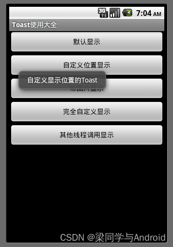 Toast toast=Toast.makeText(getApplicationContext(), "自定义显示位置的Toast", Toast.LENGTH_SHORT);