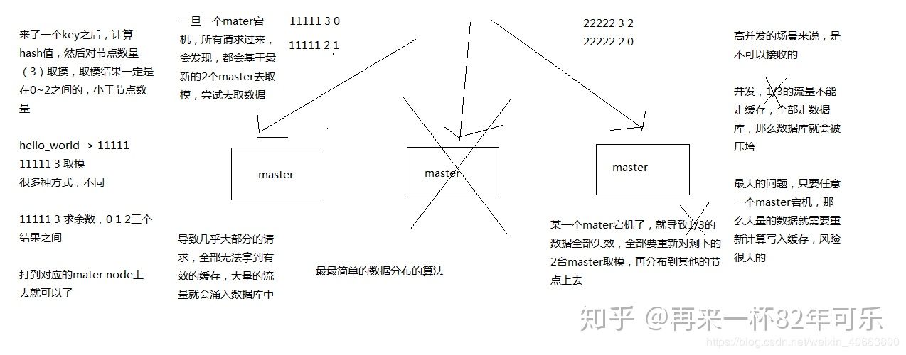 若此时对key进行哈希取模,就会发现得到的值很有可能找不到对应得节点去拿了,