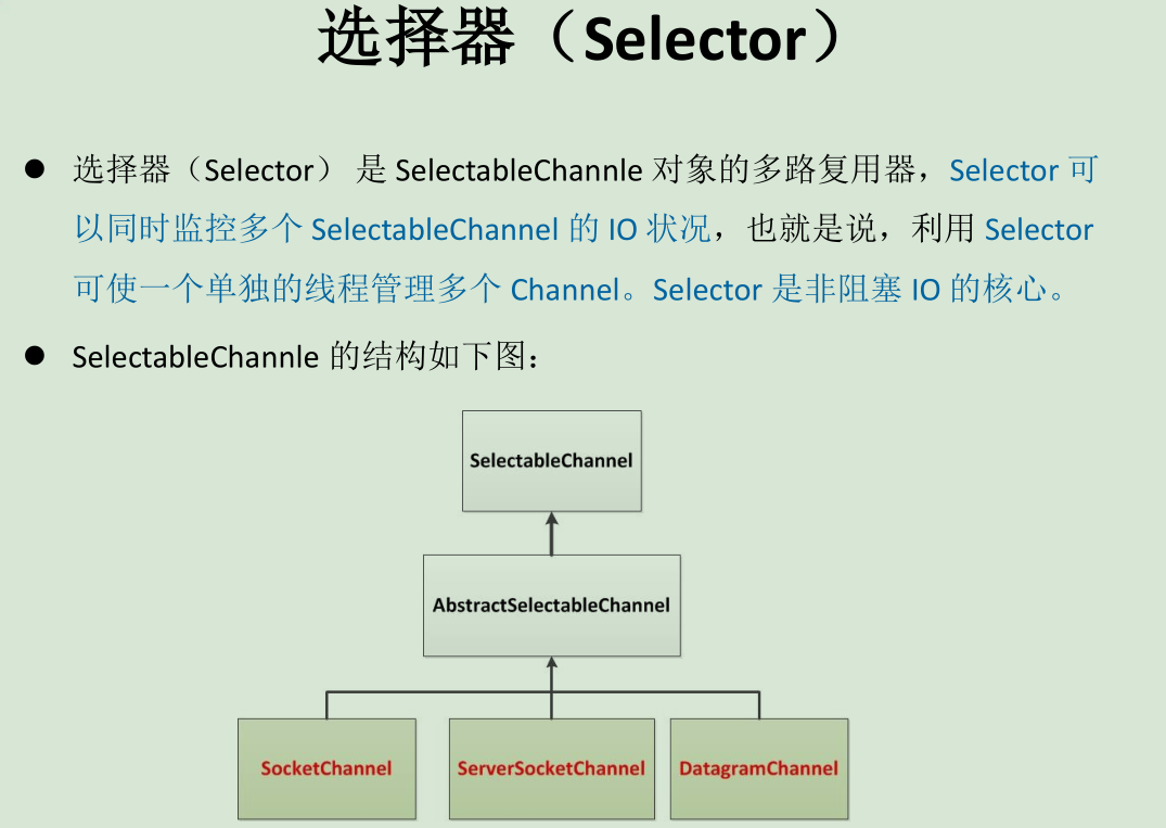 * 3. 选择器(Selector):是 SelectableChannel 的多路复用器。用于监控 SelectableChannel 的 IO 状况
