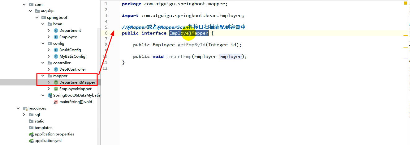 对于每一个mapper类,我们都需要在类上添加注解@mapper,如果不想这样做,就可以开启包扫描。