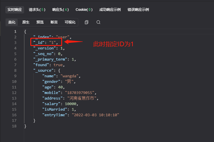 默认情况下,Elasticsearch 在搜索的结果中,会把文档中保存在 _source 的所有字段都返回。 如果我们只想获取其中的部分字段,我们可以添加 _source 的过滤 在 ApiPost 中,向 ES 服务器发 GET 请求:localhost:9200/user/_search