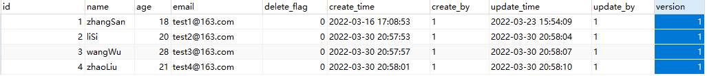 (4, 'Sandy', 21, 'test4@baomidou.com'),