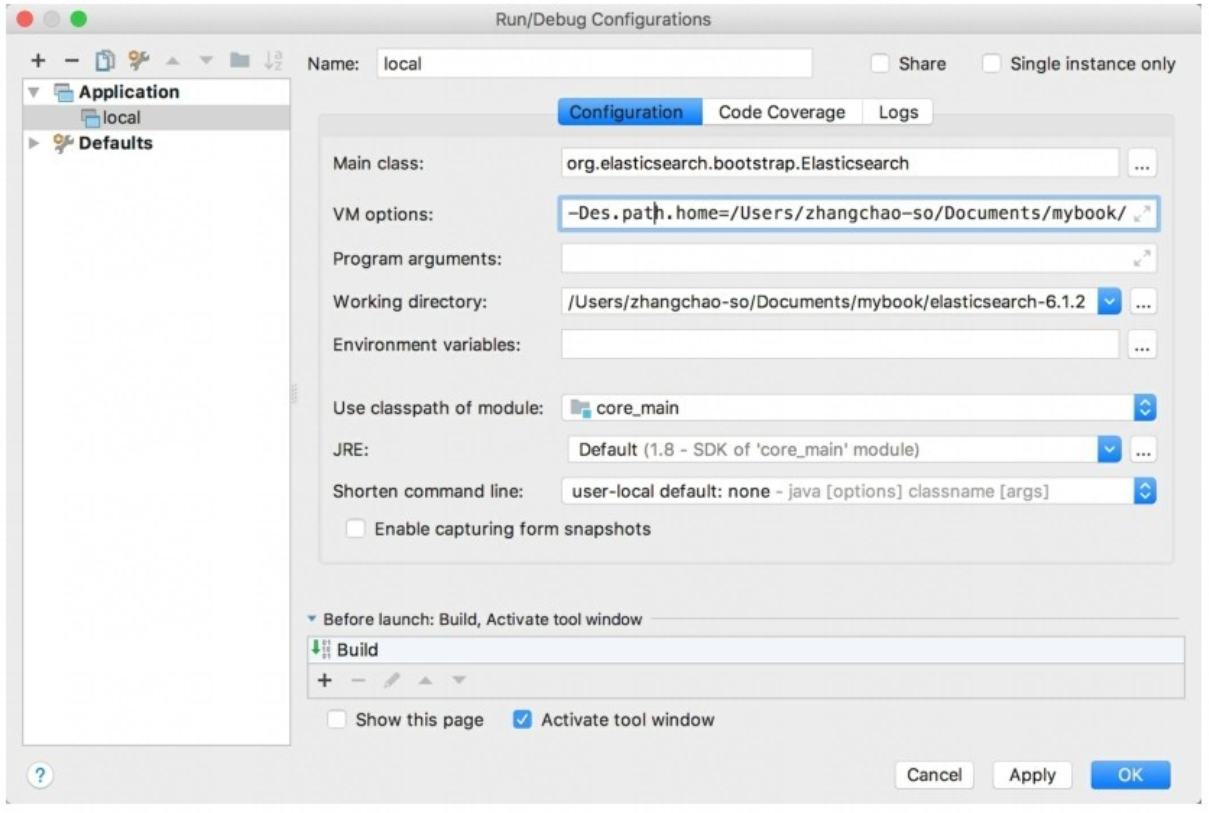 - Main class:填写org.elasticsearch.bootstrap.Elasticsearch。