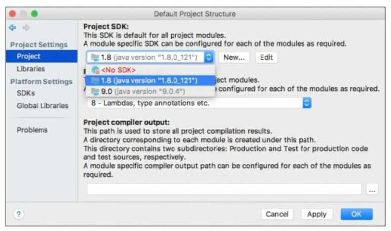 首先配置SDK。打开IntelliJ IDEA,在欢迎界面右下角选择“Configure→Project Defaults→Project Structure”,弹出如下图所示的界面。