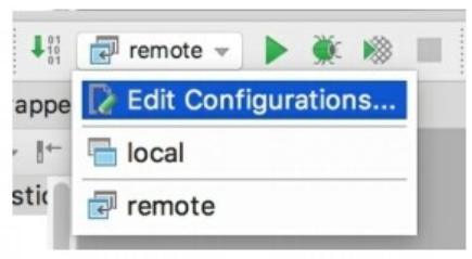 之后就在IDEA工具栏“Select Run/Debug Configuration”下拉框中选择调试本地还是远程节点,如下图所示。