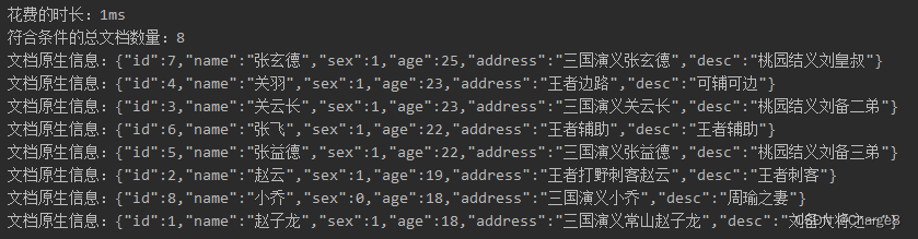 根据我之前文章对 ES命令的查询使用,测试索引的文档数据前面文章有提到的。下面我们就通过 RestHighLevelClient来进行查询。