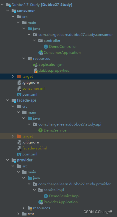- facade-api:服务针对 RPC使用(消费方/提供方)时的公共接口