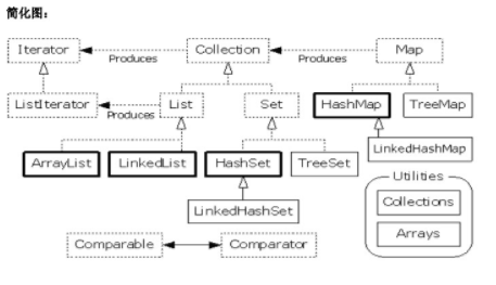 2、集合接口:6个接口(短虚线表示),表示不同集合类型,是集合框架的基础。