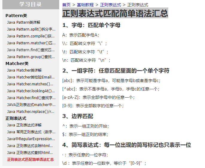 正则表达式匹配简单语法汇总:http://www.51gjie.com/java/766.html
