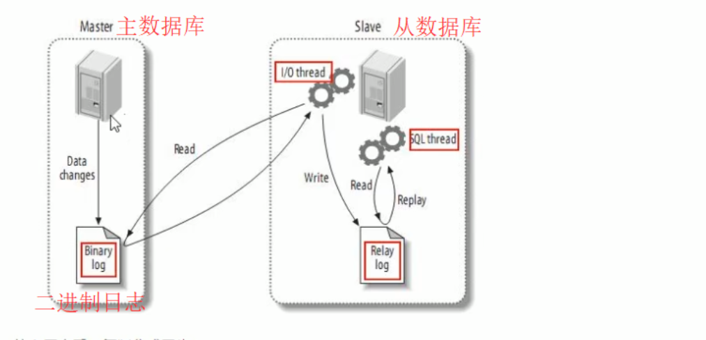 复制是指将主数据库的DDL 和 DML 操作通过二进制日志传到从库服务器中,然后在从库上对这些日志重新执行(也叫重做),从而使得从库和主库的数据保持同步。