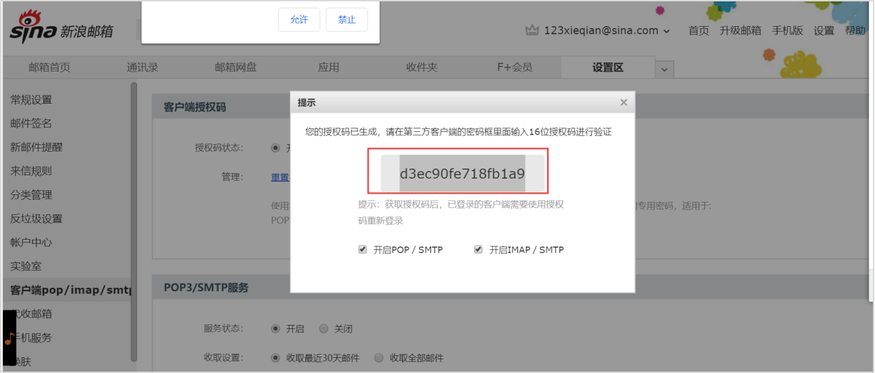 1,检查自己邮箱是否开通pop3/smtp服务。