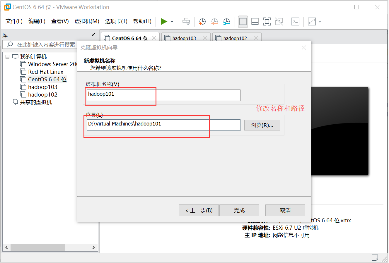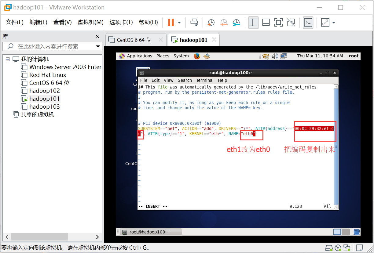 这时克隆过后的hadoop101 hadoop102只需要配置四项1.修改网卡2.修改静态ip3.修改host名称