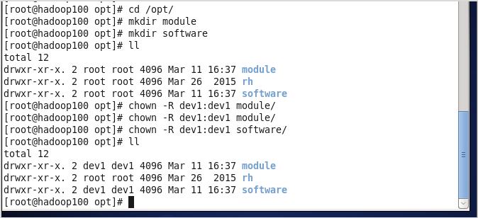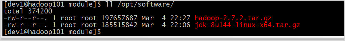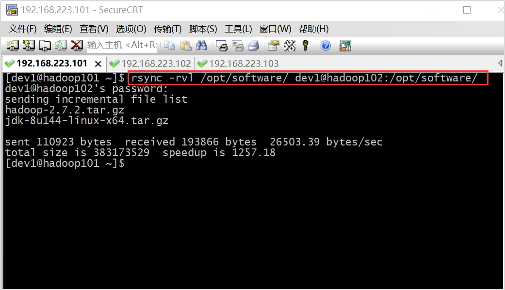 将hadoop101中的/opt、software目录同步到hadoop102服务器的dev1用户下的/opt/目录