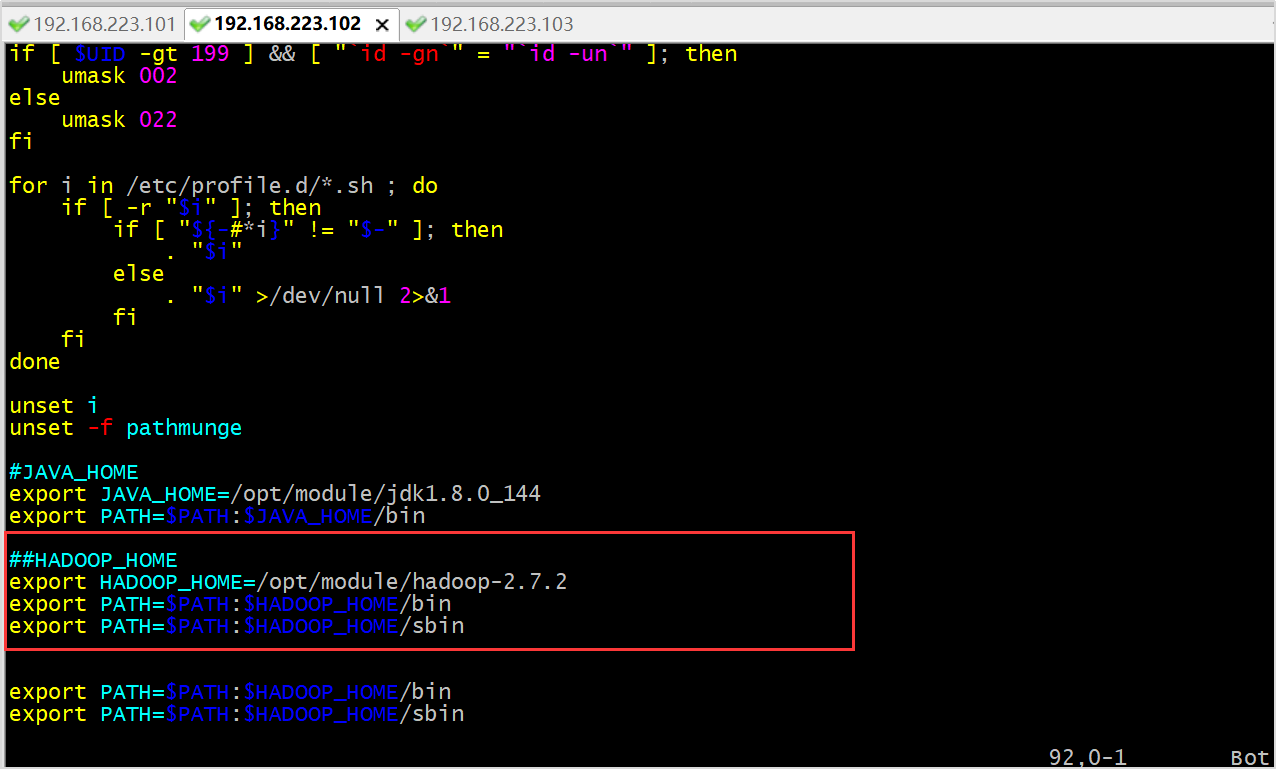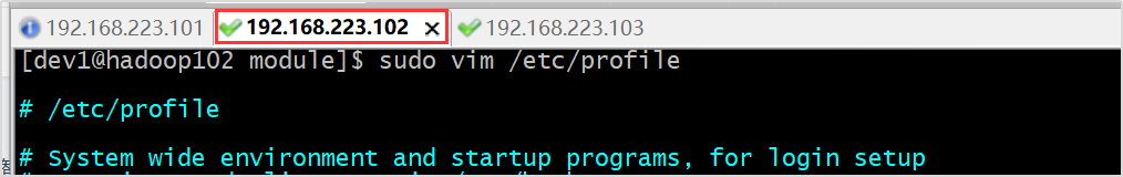 将hadoop101中的/etc/profile文件拷贝到hadoop102的/etc/profile上