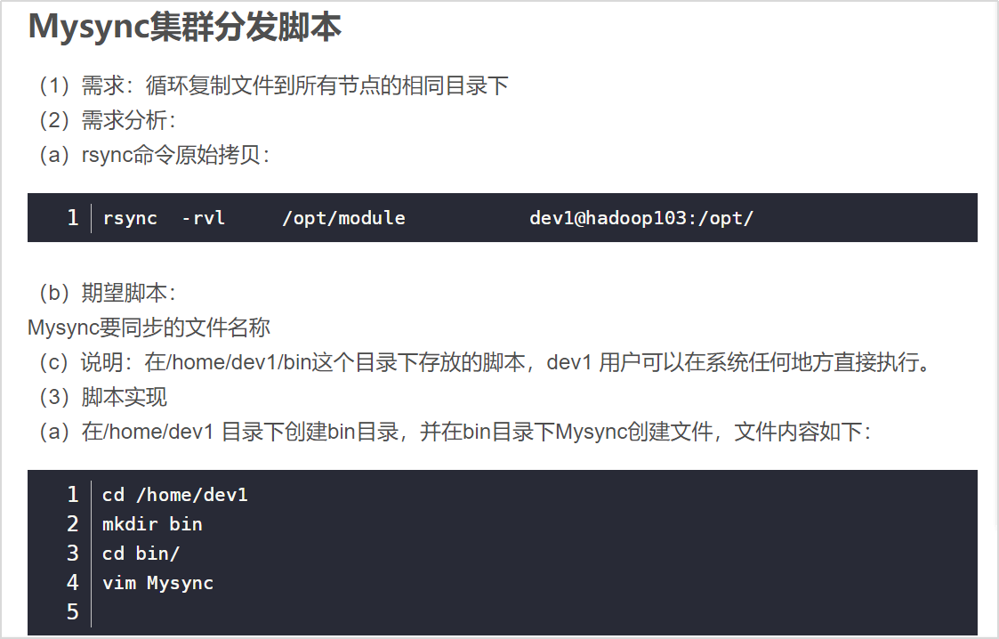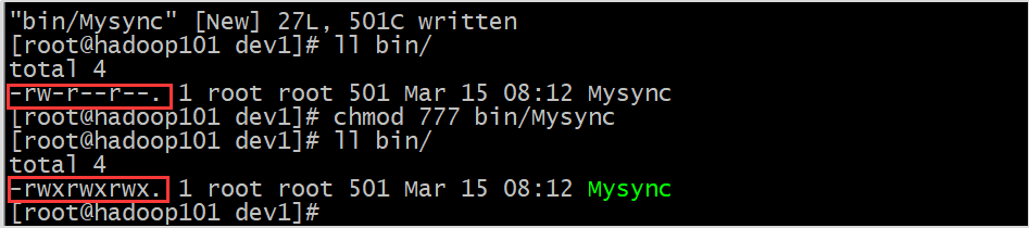在/home/dev1 目录下创建bin目录,并在bin目录下Mysync创建文件