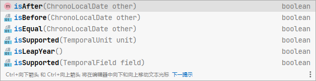 LocalDate,LocalTime,LocalDateTime 的Api肯定是相似的,包含了时间的几乎所有的处理.如下的是时间的相互比较的Api