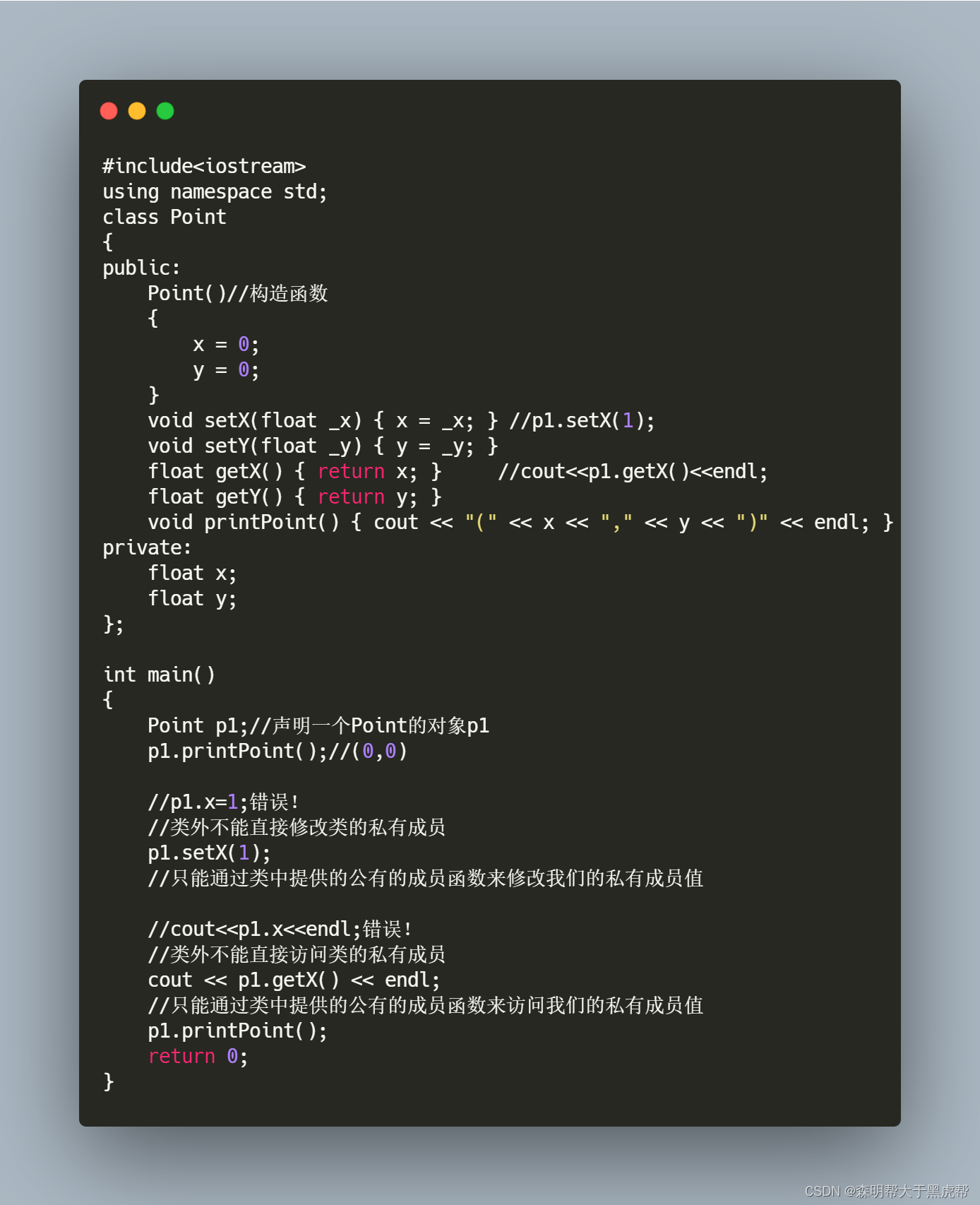 get()函数是指输出,打印,读取私有成员变量的值的那类函数; -
