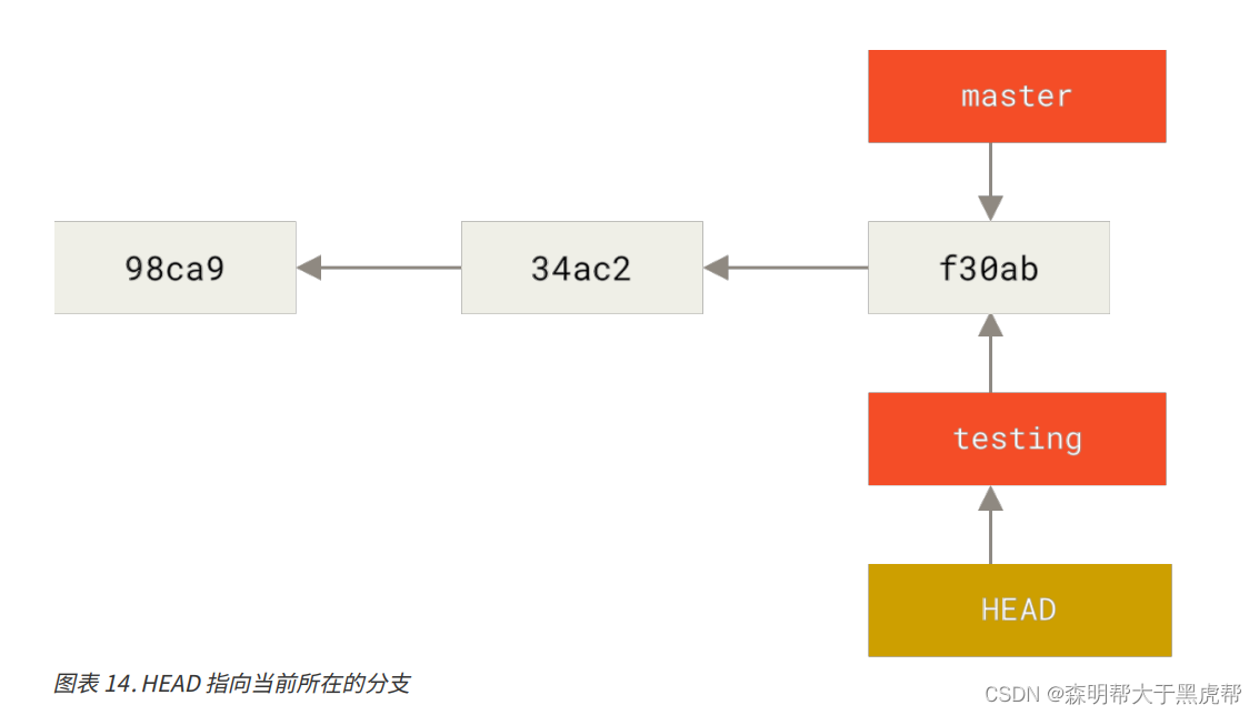 这样 HEAD 就指向 testing 分支了。