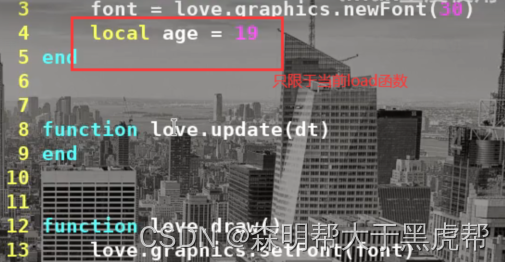 以上就是今天要讲的内容,本文仅仅简单介绍了Love2d之多个文件和作用域范围,介绍了love2d的全局变量和局部变量的作用域范围,与博主的lua语言文章结合更好的理解love2d的编码,如果你是一名独立游戏开发者,或者一位对游戏开发有着深厚兴趣,但是又对于unity3d,ue4等这些对于新手而言不太友好的引擎而头疼的开发者;那么现在,你可以试试Love2D。Love2D是一款基于Lua编写的轻量级游戏框架,尽管官方称呼其为引擎,但实际上它只能称得上是一个框架,因为他并没有一套全面完整的解决方案。不过,这款框架上手及其容易,是学习游戏开发的初学者入门的一个良好选择。