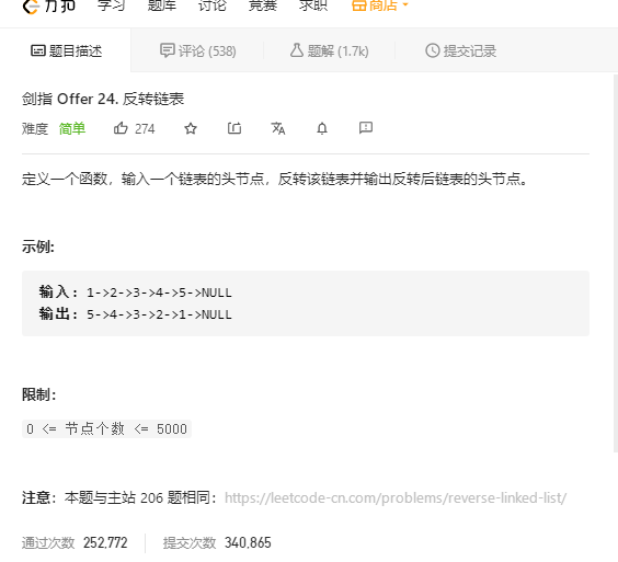 - 直接使用三个指针翻转,定义指针n1=NULL,n2=head,n3=head->next