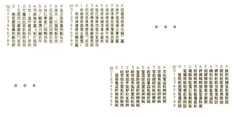 56~87 区收录了 3008 个二级汉字,按部首/笔画排序: