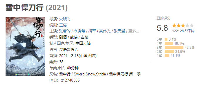 最近已经播完第一季的电视剧《雪中悍刀行》,从播放量就可以看出观众对于这部剧的期待,总播放量达到50亿,可让人遗憾的是,