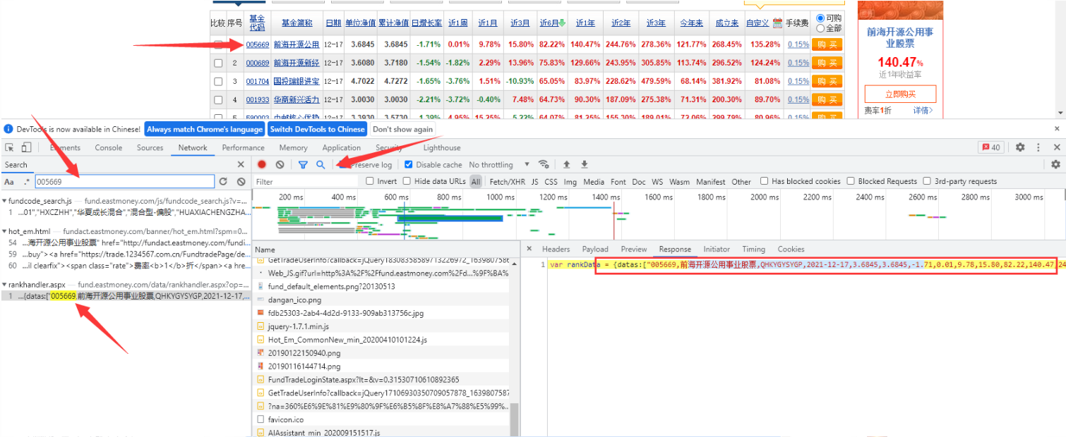 一:打开开发者工具,按F12,或者右键点击检查 二:刷新网站,点击搜索工具,在搜索框内输入基金代码,点击搜索 三:找到数据所在的真实url