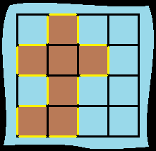 网格中的格子 水平和垂直方向相连(对角线方向不相连)。整个网格被水完全包围,但其中恰好有一个岛屿(或者说,一个或多个表示陆地的格子相连组成的岛屿)。
