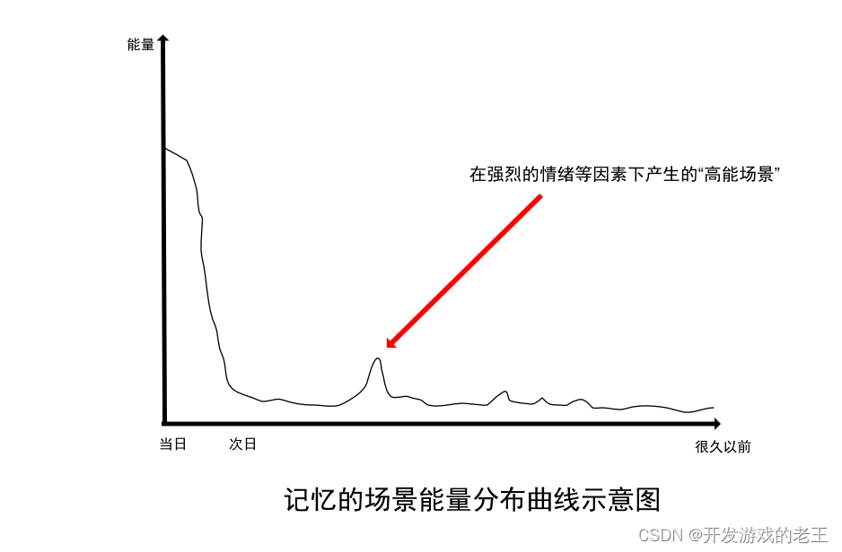甚至它还可以解释:有些时刻,比如我们看到了一个可怕的东西,这个场面会让我们很兴奋并且给与此时的场景很高的强度,于是即使过了很长时间我们对它依然记忆犹新,就像下图所示的样子:
