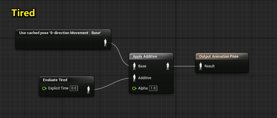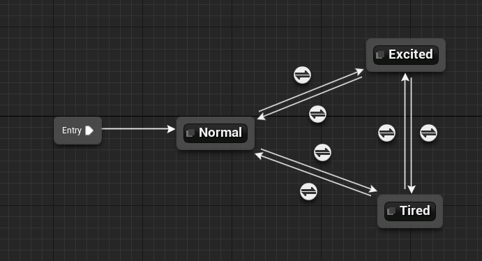 其中Normal、Excited以及Tired三种状态中都包含8-direction Movement : Base状态机。三种状态之间的切换可以新添加一个枚举标志位Gait来控制。