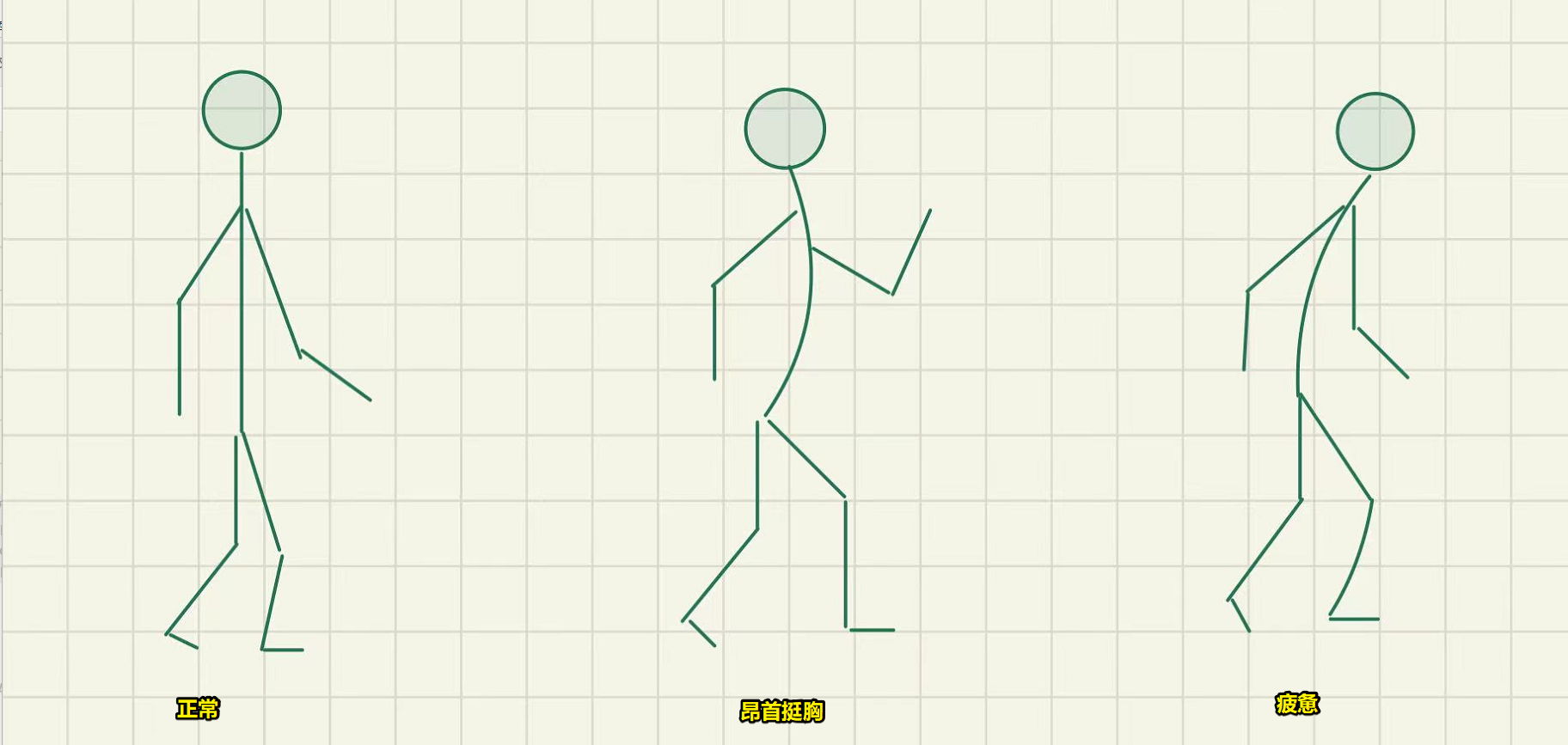 - 并在此基础上实现诸如正常、昂首挺胸、疲惫等不同步态的叠加效果(如下图:叠加体态)。