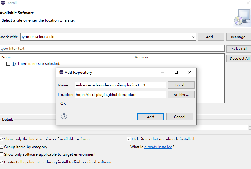 我先在eclipse市场找了下,没有找到Fernflower,却找到了Enhanced Class Decompiler