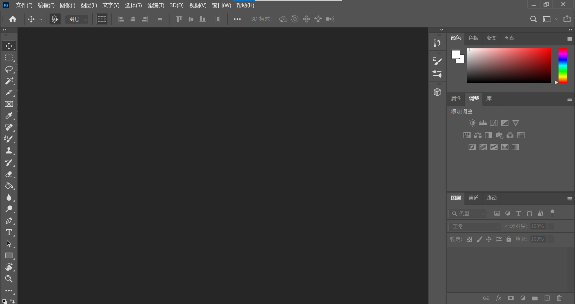 ps打开后有很多按钮我们可以按照规律来记忆,主要分为四区八栏