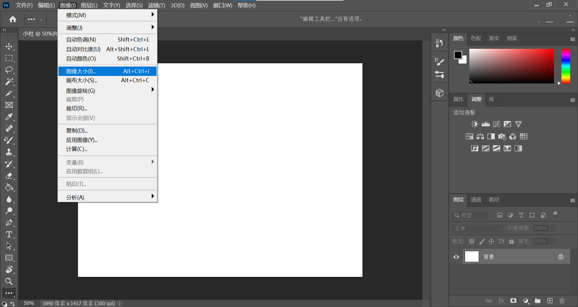 选择上方工具栏,图像→图像大小,也可以使用快捷键ctrl+alt+i调出图像大小面板