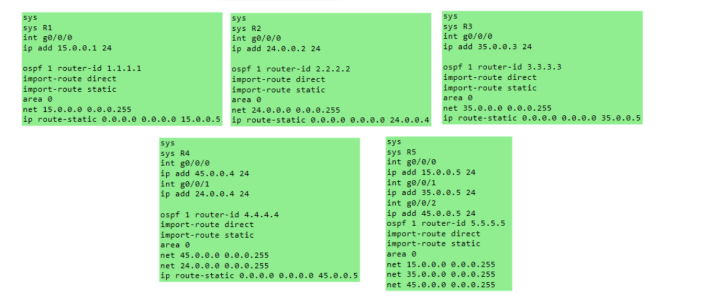 四个Part中间由R5作为中心路由相连