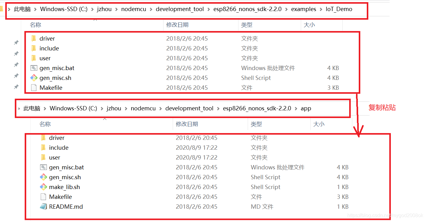 - 打开esp8266_nonos_sdk-2.2.0目录,将driver_lib文件改名成app
