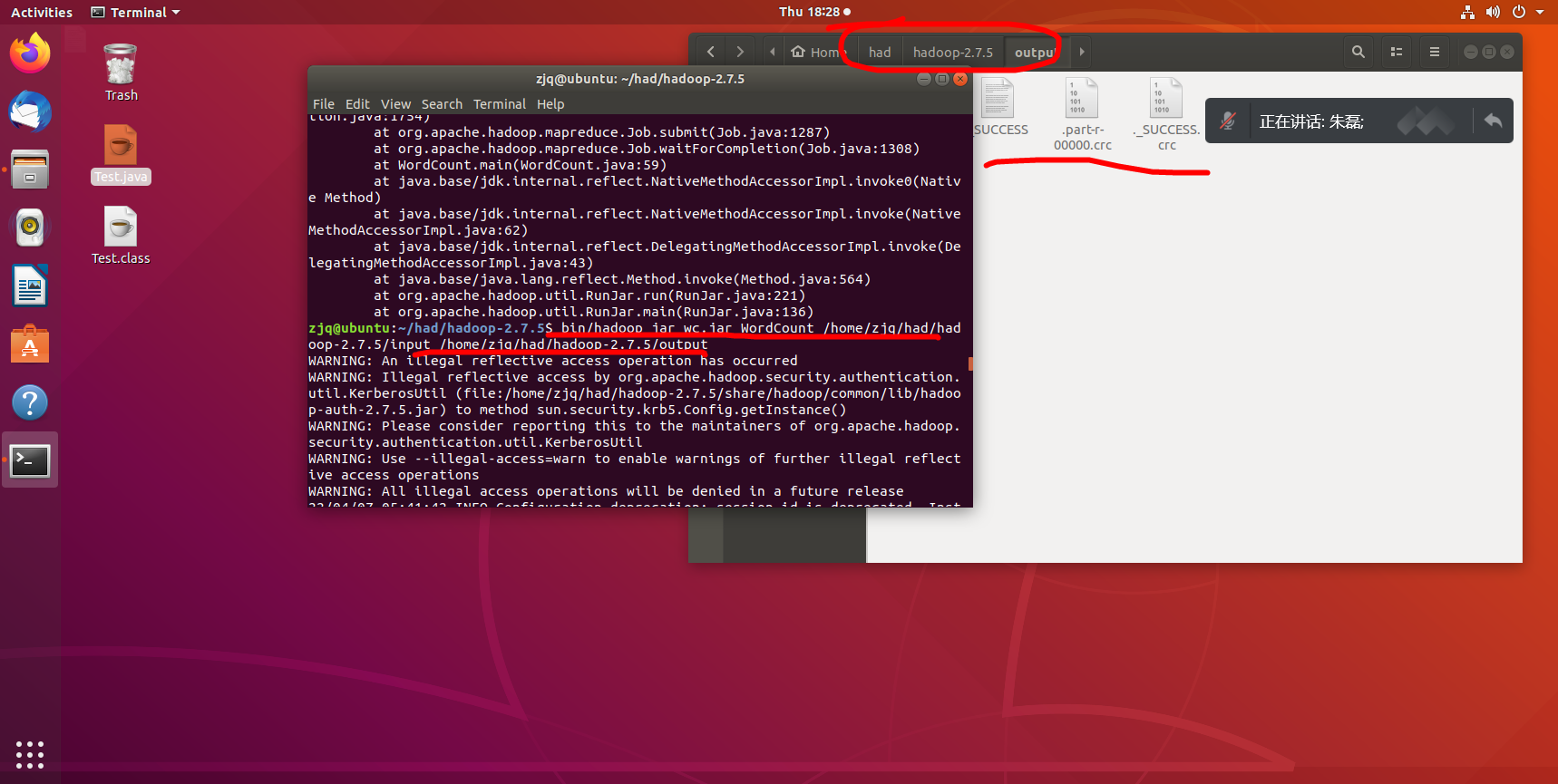 bin/hadoop jar wc.jar WordCount /home/zjq/had/hadoop-2.7.5/input /home/zjq/had/hadoop-2.7.5/output