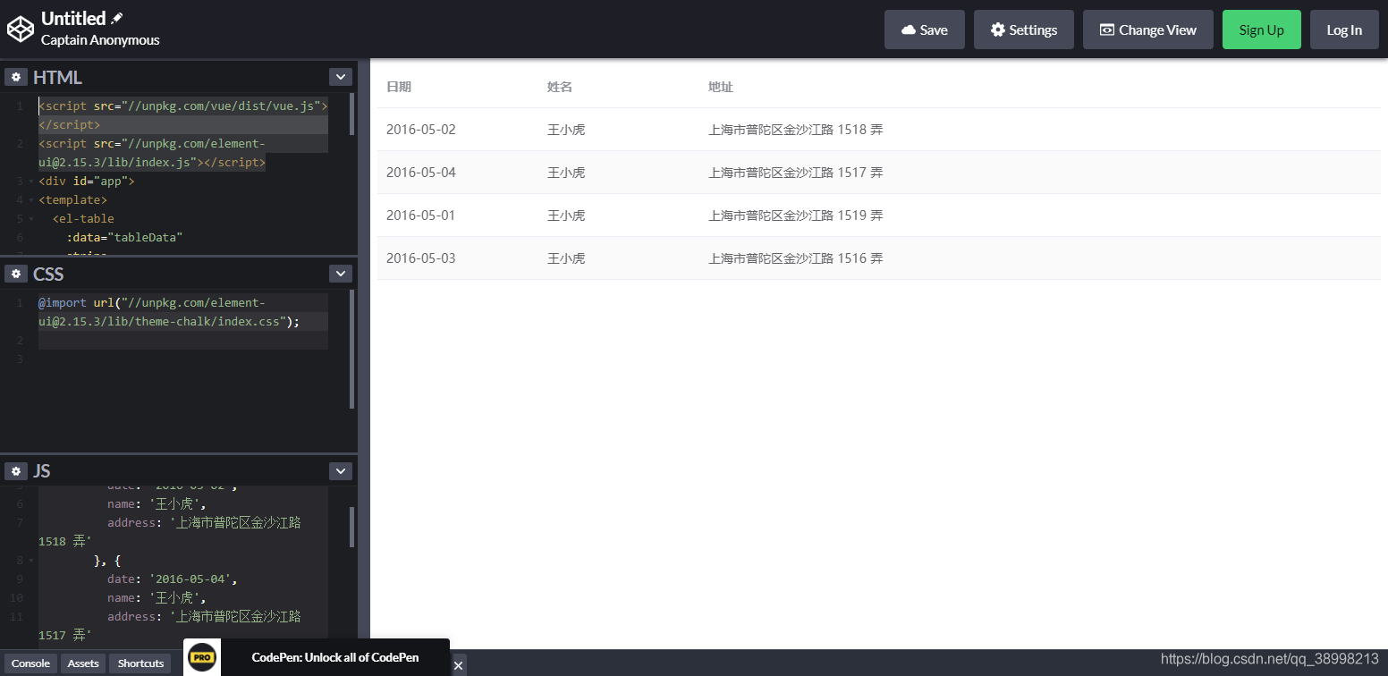 通过 Element ui 官网进行效果查看和代码复制