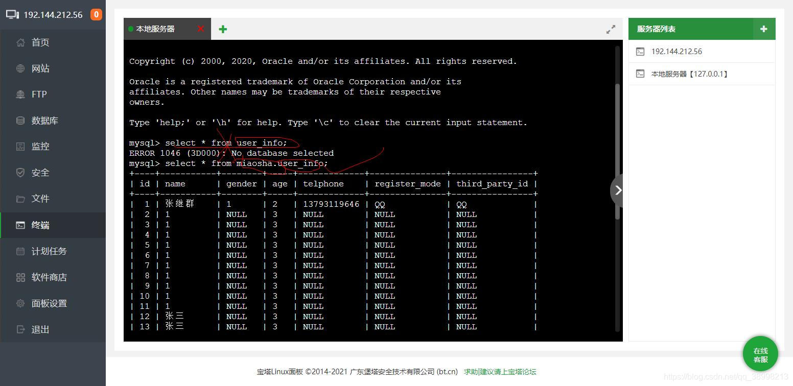 mysql -umiaosha -p123456