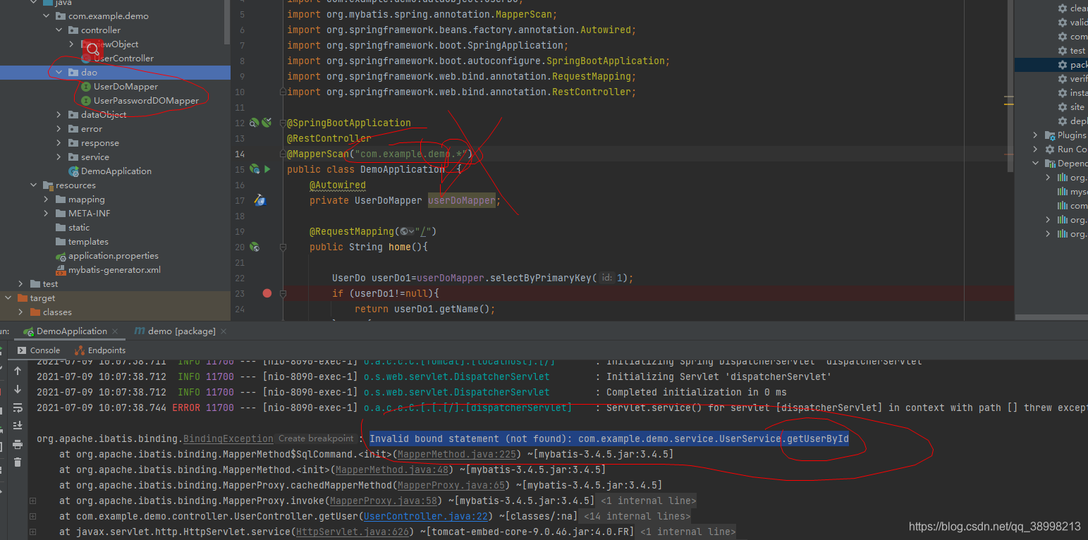 Invalid bound statement (not found): com.example.demo.service.UserService.getUserById