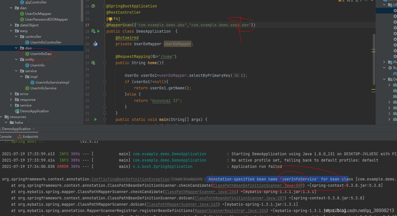 Annotation-specified bean name 'userInfoService' for bean