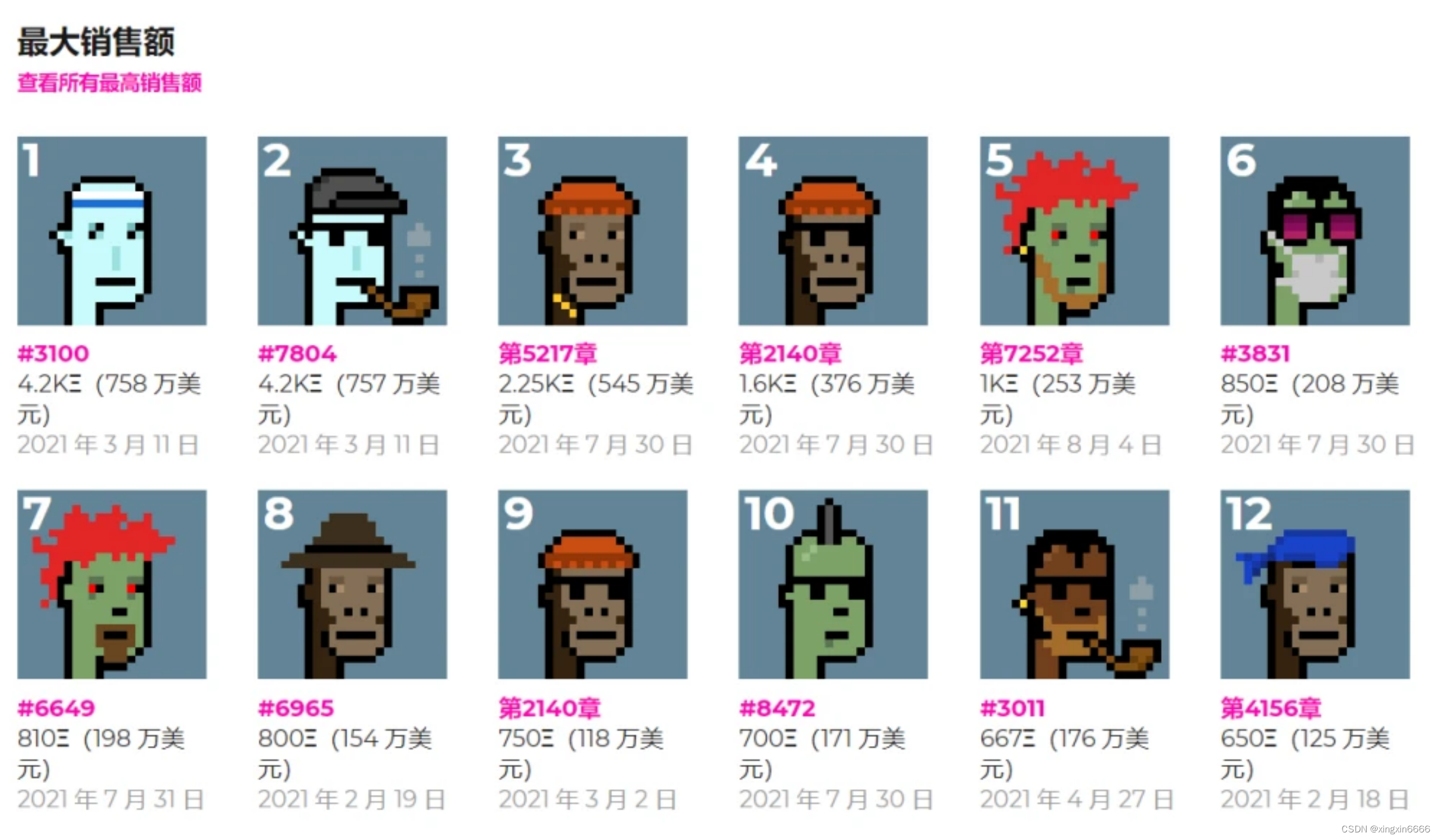 - 2022年2月12日, “CryptoPunks5822”打破记录成交价约2280万美元
