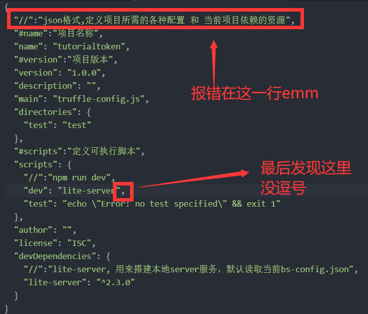 报错在第一行,找啊找,注释格式么得问题,引号英文的,加英文逗号了, 搞了半天, 发现是后面每加逗号emm