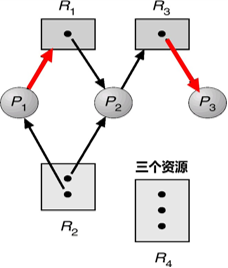 - 资源剥夺法: 当发现死锁后,从其它进程剥夺足够数量的资源给死锁进 程,以解除死锁状态。