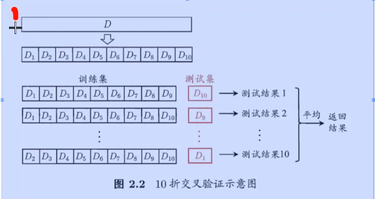 2.评估方法(训练集、验证集、测试集) training set训练集 training set训练集的保留方法: 留出法(简单37分,28分) : 要注意训练集和测试集同分布,或者多次随机划分,训练出多个模型,最后取平均值。 交叉验证法:
