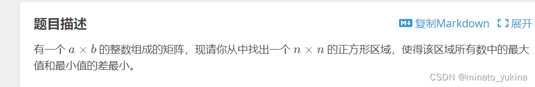 mx−min最小即可. 在二维的情况,考虑枚举该正方形的左上角,需要一个数据结构支持查询二维的一个最大值. 考虑