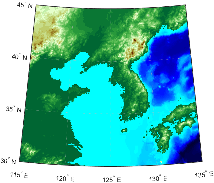 geoshow(korea5c,korea5cR,'DisplayType','texturemap')