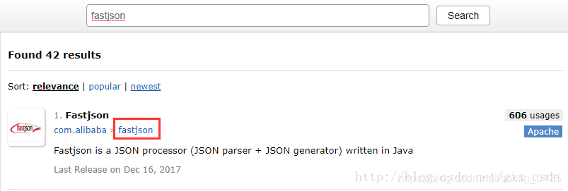 在https://mvnrepository.com/的maven repository中搜索fastson: