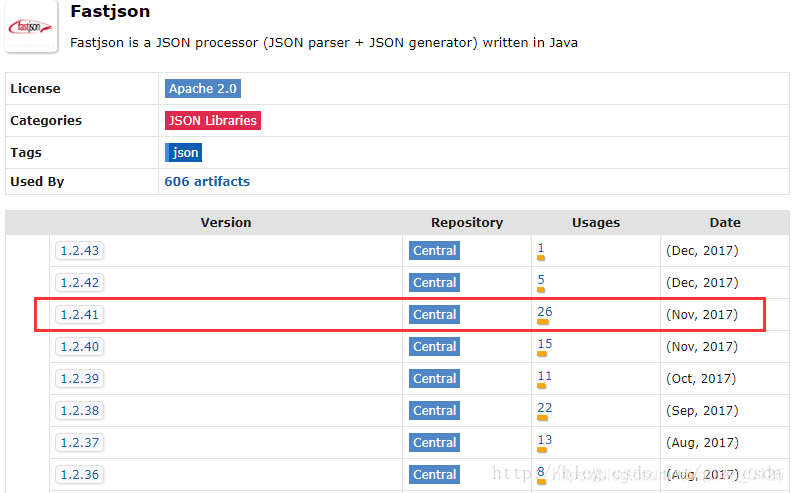 com.alibaba fastjson 1.2.41 原文链接:https://blog.csdn.net/gxx_csdn/article/details/78777051